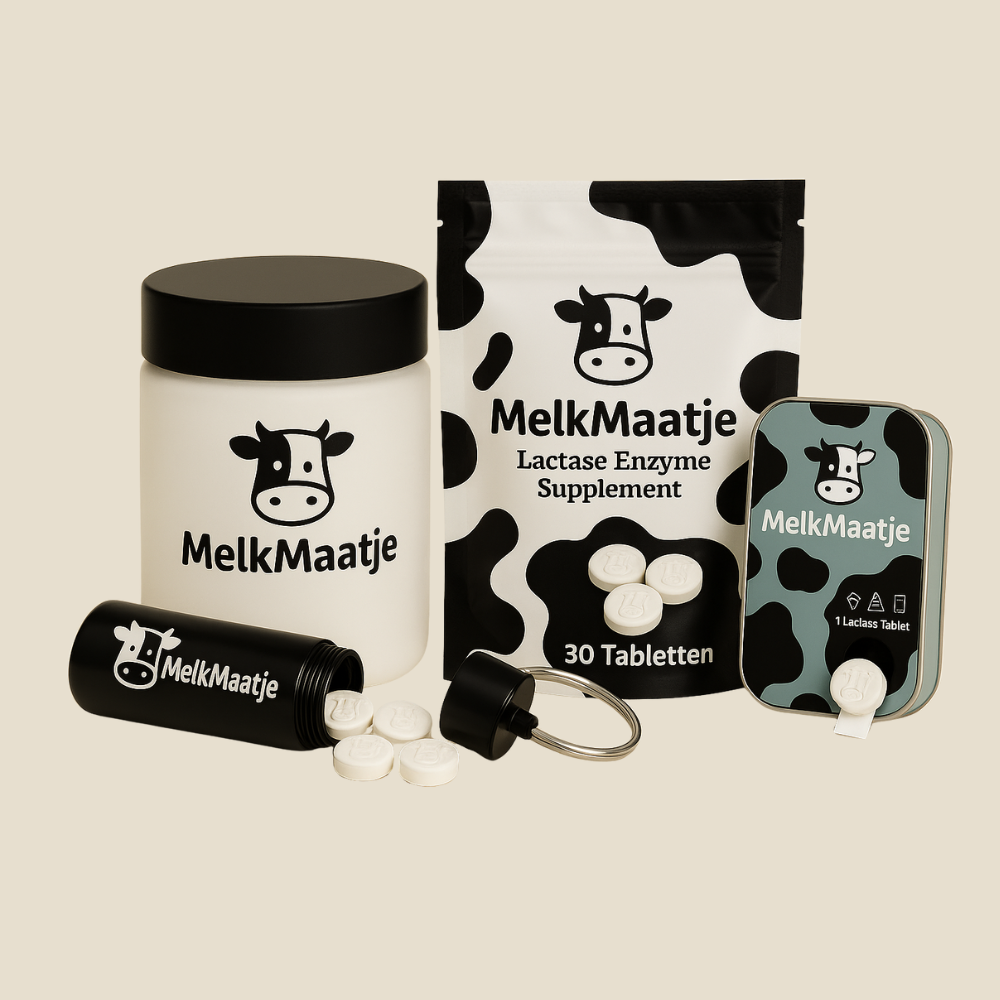 Daarom maakte ik MelkMaatje: supersterke lactase + slimme accessoires, zodat iedereen weer zorgeloos van zuivel kan genieten.